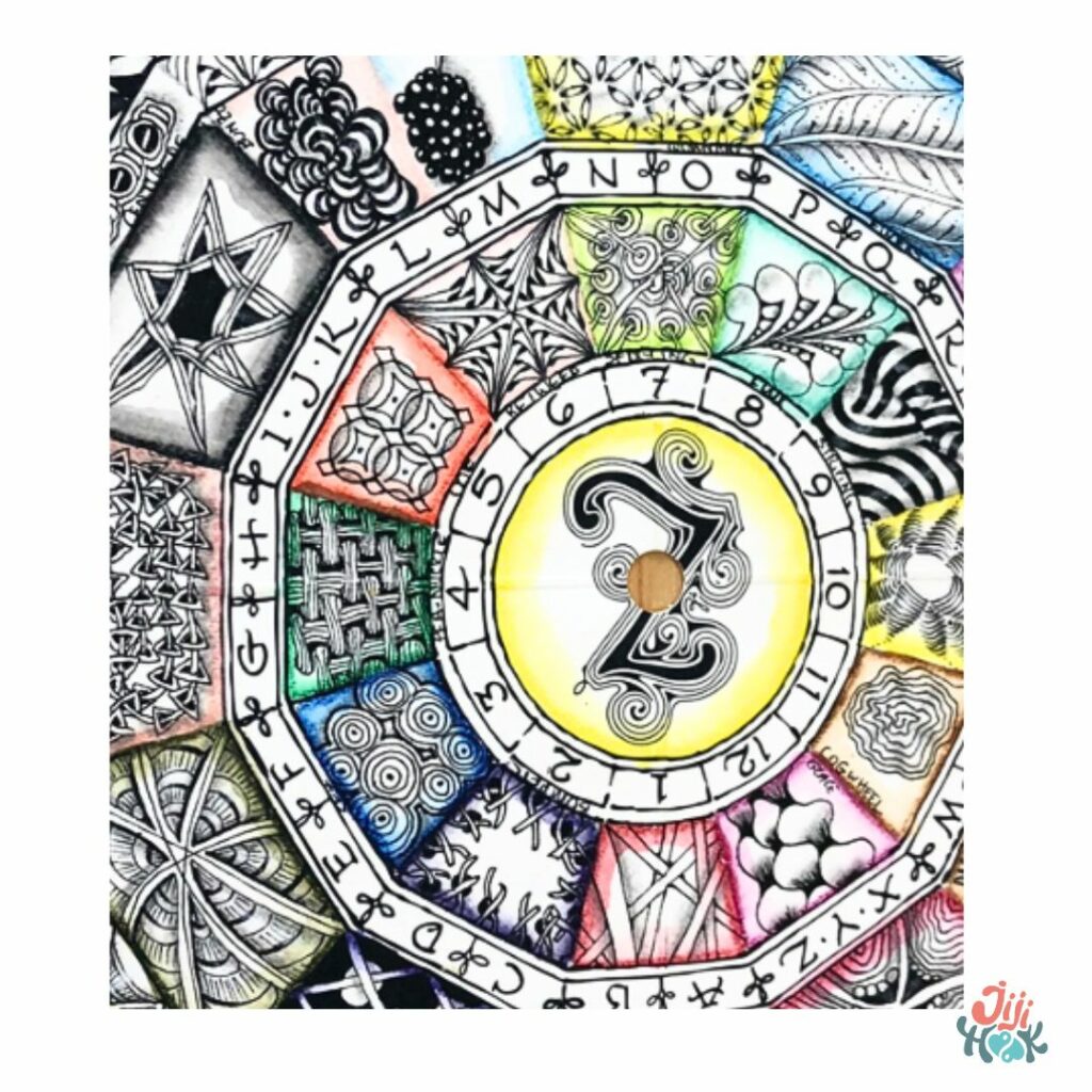 La roue de motifs : un projet officiel zentangle, disponible en kit ou à fabriquer soi-même. On fait tourner la roue et on choisit un motif au hasard. Ludique, inspirant, et parfait pour sortir de ses habitudes. Vous trouverez un précédent article à ce sujet ici.